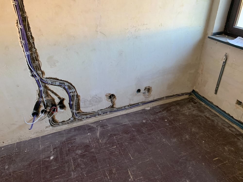 Nach dem Einzug häuften sich die Fragen, ob das alles so stimmte. Ständig flogen Sicherungen heraus, vor allem in der Küche; einmal bekam die Ehefrau sogar einen Stromschlag, als sie ein Gerät bediente. Als wir mit einer Inspektion beauftragt wurden, trauten wir unseren Augen nicht: Schon auf den ersten Blick sahen wir billige Schalter aus dem Baumarkt, die in unterschiedlichen Höhen montiert waren. Im Verteilerkasten entdeckten wir völlig veraltete Technik und viel zu wenige Schaltkreise. Und die Leitungsführung stellte sich als zweiadrig heraus – mit Stegleitungen, an die viel zu viele Verbraucher angeschlossen waren.